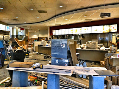 The downtown Silver Spring Chick-fil-A had been expected to reopen today after closing last week for major renovations. However, the famously closed-on-Sunday fast food chain's dining room was anything but quiet yesterday. No seating was in place, and it looked like just the clean-up alone would take a day or two. Can they beat the clock and reopen today for lunch?